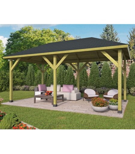 ONLYWOOD Gazebo in Legno KIOSK Tetto in Legno 594 x 340 cm - Antivento