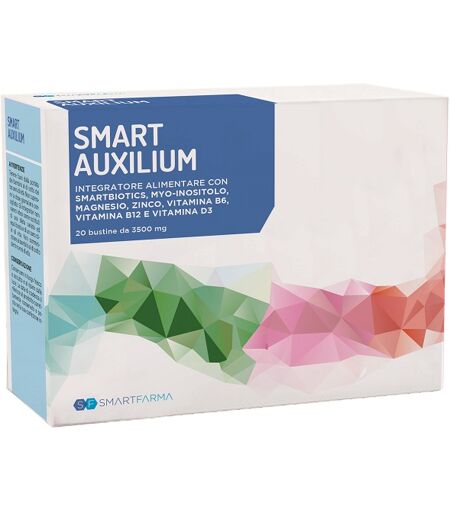 SMART AUXILIUM - Descrizione Integratore alimentare a base di SMARTBIOTICS myo - inositolo magnesio zinco vitamina B6 vitamina B12 e vitamina D3. Il magnesio e la vitamina B6 contribuiscono al normale funzionamento del sistema nervoso. Lo zinco contribuisce alla normale funzione cognitiva. La … ...