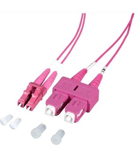 - Compatibile con applicazioni di fibra multimodale- Elevata larghezza di banda per il supporto delle distanze piu' lunghe- Soluzione economica- Ideale per l'utilizzo in applicazioni Gigabit Ethernet- Senza alogeni e ritardanti di fiamma secondo IEC-60754-2, IEC-60332-1 e IEC-61034Caratteristiche - Diametri fibra - Core: 50 micron; Rivestimenti: 125 micron- tipo di fibra - Multimodale- OM4: cavo in fibra multimodale 50/125 predisposto per trasportare il 10 Gigabit Ethernet fino a 550 m, il 40 e il 100 Gigabit Ethernet fino a 150m- Connettori: SC a LC- Connettore LC nel design compatto- I connettori soddisfano la classe di qualita' di grado A/1 multimodale secondo IEC-61753-122-2 - Duplex- Rivestimento: PVC- Jacket OD: 1,2 mm- Rivestimento di colore: Fucsia- Lunghezza: 1m - OM4: cavo in fibra multimodale 50/125 predisposto per trasportare il 10 Gigabit Ethernet fino a 550 m, il 40 e il 100 Gigabit Ethernet fino a 150m- Connettori: SC a LC- Duplex- Diametri fibra - Core: 50 micron; ...
