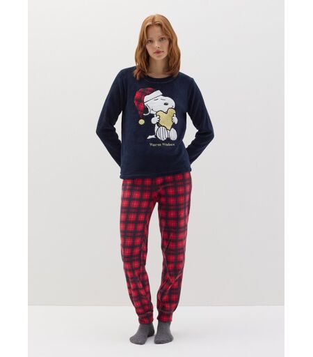 Pigiama lungo in velour. Top con scollo rotondo. Maniche lunghe. Ricamo Peanuts Snoopy con cuore e lettering sul davanti. Pantaloni con coulisse in vita. Fantasia check. Ricamo lettering Peanuts sul lato. ...