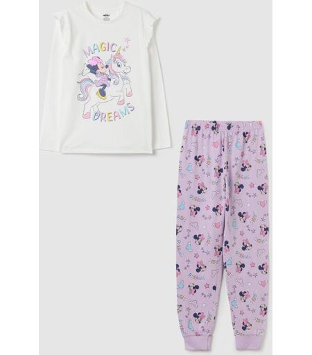 Pigiama lungo in puro cotone biologico. Top con scollo rotondo. Rouches applicate al giromanica. Stampa Disney Minnie con unicorno e lettering sul davanti. Pantaloni con vita elasticata. Stampa Disney Minnie con cuori alati e lettering all-over. ...