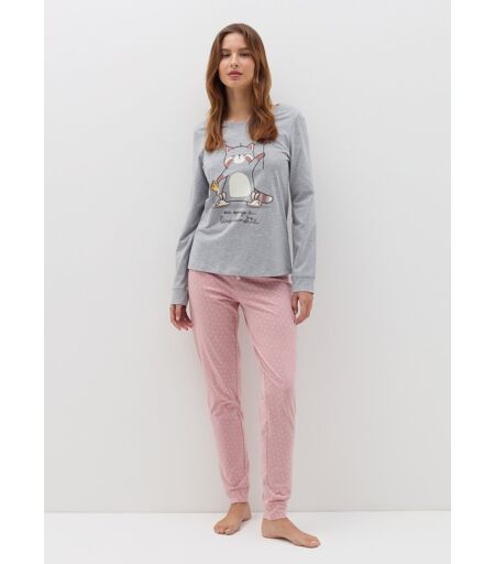 Pigiama lungo composto da top in cotone biologico e viscosa e pantalone in puro cotone biologico. Top con scollo rotondo. Maniche lunghe. Stampa lettering "Ora spengo ... e buonanotte" con animaletti sul davanti. Pantalone con coulisse a fettuccia in vita. Stampa micro pois all-over. ...