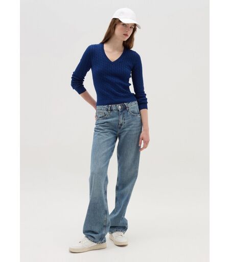 OVS, Pullover Con Lavorazione A Trecce Scollo A V, Donna, Blu, Taglia: M