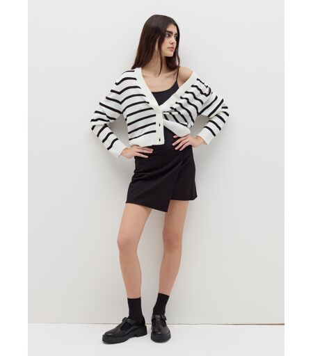 Cardigan boxy fit in fantasia a righe B.Angel. Scollo a V. Profili rifiniti a costine. Chiusura con bottoni. ...