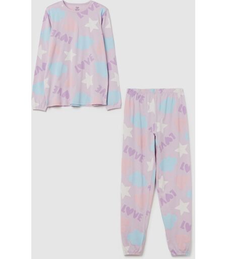 OVS KIDS, Pigiama In Cotone Bio Stampa "love" Stelle E Nuvole, Bambina, Viola, Taglia: 10-11