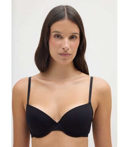 Il reggiseno a balconcino nero della linea OVS è realizzato in cotone elasticizzato con coppe imbottite che garantiscono sostegno e comfort durante tutta la giornata. Le spalline regolabili e la chiusura posteriore con ganci assicurano una vestibilità personalizzata, rendendolo un capo essenziale e versatile per l'intimo quotidiano. ...