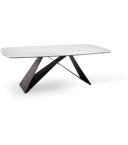 E-Stylo Tavolo Fisso Top in ceramica (5 mm) su vetro temperato (8 mm) Gambe in metallo verniciato,110cm X 220cm H. 76cm,Top: calacatta gambe: marrone