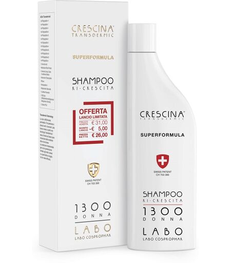 CRESCINA SHAMPOO RI - CRESCITA - 1300 DONNA - Descrizione Shampoo specifico coadiuvante per capelli radi a base dei principi attivi di CrescinaTransdermic Ri - Crescita HFSC (cisteina, lisina, glicoproteina, hydrolyzed rice protein ecorosolic acid da Eriobotrya japonica leaf EXTRACT), dei complessi… ...
