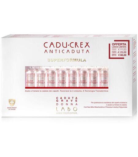 Cadu - Crex Anticaduta Superformula - Descrizione Cadu - Crex Anticaduta Superformula è un trattamento ad uso topico di impiegocosmetico che aiuta in modo mirato a frenare la caduta dei capelli e favorirne lari - crescita con tecnologia transdermica brevettata. Grazie ad essa le sostanze attive, in… ...