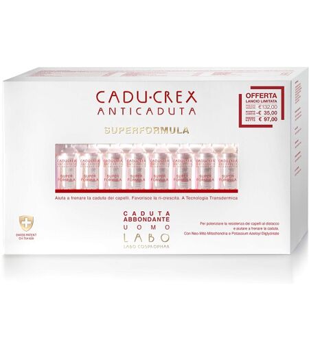 Cadu - Crex Anticaduta Superformula - Descrizione Cadu - Crex Anticaduta Superformula è un trattamento ad uso topico di impiegocosmetico che aiuta in modo mirato a frenare la caduta dei capelli e favorirne lari - crescita con tecnologia transdermica brevettata. Grazie ad essa le sostanze attive, in… ...
