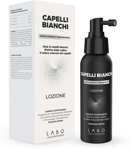 Capelli Bianchi lozione - Descrizione Capelli Bianchi lozione è un preparato spray ad uso topico di impiego cosmeticoche favorisce la formazione della melanina capillare e aiuta a contrastare la diffusionedei capelli bianchi. Può essere utilizzato da solo o come applicazionecontinuativa dopo il tra… ...