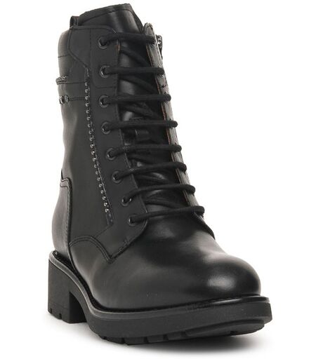 anfibi donna made in italy realizzati in pelle con suola in gomma che completa il carattere grintoso di questi stivaletti di tendenza. tomaia fodera e sottopiede in pelle. la zip laterale facilita la calzata. tacco alto 4 cm. colore: nero. ...