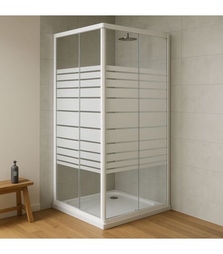 OGOMONDO Box doccia corner due ante cristallo serigrafato temperato misure 76.5-79.5x76.5-79.5xh185 cm serigrafato - confezione 1
