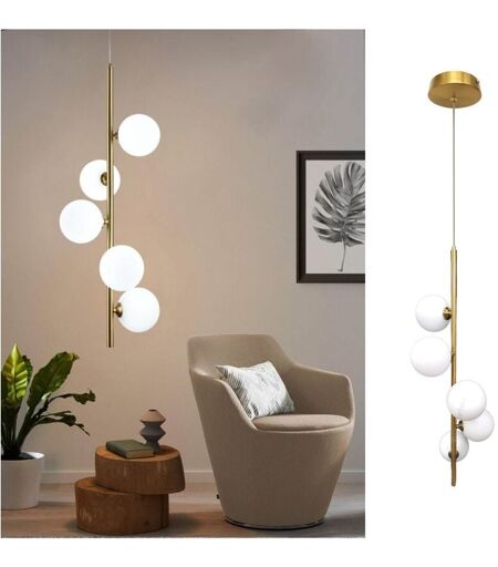 UNIVERSO Lampadario sospeso verticale oro con sfere bolle bianche in vetro design moderno attacco G9 per camera soggiorno