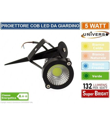 UNIVERSO - faro proiettore cob led orientabile da giardino con picchetto 5W IP65 luce bianco caldo - freddo - naturale - verde - Colore Luce: Verde