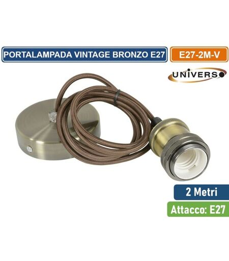 Lampadario portalampada compatibile con lampadine E27. Realizzato in metallo spazzolato color bronzo, con cavo rivestito in stoffa in tinta di colore nero. Arricchito di zigrinature, si contraddistingue per un aspetto solido e retrò, molto elegante. Consigliamo di abbinarlo alle lampadine filament E27 . Lampadario molto semplice da installare grazie alla connessione tramite morsetti a vite, la piastra di fissaggio e le viti con tasselli incluse. Dimensioni attacco: Lunghezza cavo: 2 metri. Il lampadario viene venduto vuoto, lampadina E27 non inclusa. ...