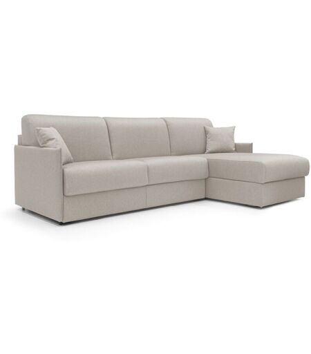 DIVANI.STORE - Evans Divano letto angolare con penisola in morbido tessuto impermeabile T13 252 cm Destro (mat. 140x197) panna
