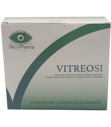 VITREOSI - Descrizione Integratore alimentare a base di collagene idrolizzato, minerali, amminoacidi, vitamina C, acido ialuronico e nucleotidi utile per apportare una quota integrativa di tali ingredienti all'alimentazione quotidiana. Il magnesio, il potassio e la vitamina C contribuiscono al norm… ...