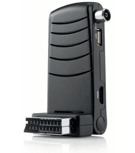TELE System TS6005 Stealth. Fonte segnale: Terrestre, Tipologia HD: Full HD, Formato del segnale digitale: DVB-T HD, DVB-T2 HD. Formati video supportati: AVC, H.264, H.265, HEVC, MPEG2, MPEG4. Colore del prodotto: Nero, Tipo sintonizzatore: Digitale, Numero di sintonizzatori: 1 sintonizzatore/sintonizzatori. Consumo di energia: 1200 mA. Larghezza: 152 mm, Profondità: 63 mm, Altezza: 20 mm Mini Decoder SCART / HDMI HDIl Ricevitore Digitale Terrestre TS6005 STEALTH si distingue per le dimensioni contenute pensato per essere installato direttamente alla presa SCART posta sul retro di un TV (o via HDMI).TS6005 STEALTH si trasforma all’occorrenza in lettore multimediale via USB per riprodurre musica, foto e video direttamente sul TV di casa.La funzione AUTOSCAN rileva, mentre il decoder è in stand-by, le fre-quenze televisive e carica in modo autonomo gli eventuali nuovi canali trasmessi, mentre la funzione LCN “Logical Channel Number” ordina in modo logico e automatico la lista canali. ...