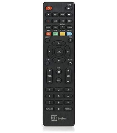 TELE System 58035004. Compatibilità marca: TELE System, Utilizzo appropriato telecomando: Sintonizzatore TV, Interfaccia: IR Wireless. Numero di dispositivi supportati: 1, Raggio di funzionamento massimo: 10 m. Tipo di ingresso: Pulsanti, Numero di tasti: 45 Telecomando ufficiale per il decoder TS9018HEVC tivùsat ...