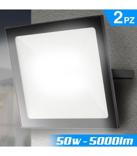 BAKAJI - Set 2 Fari Led 50W Luce Alta Luminosita 5000lm Bianco Faro Faretti Esterno Slim