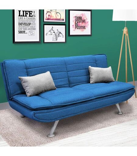BAKAJI Divano Letto Ginevra Clic Clac 3 Posti Tessuto Imbottito Blu e Metallo Cuscini