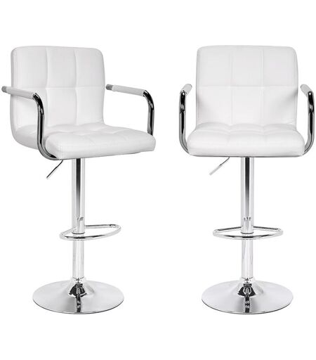 BAKAJI Set Sgabelli Cucina Seduta Pelle Imbottita Sgabello con Braccioli Casa Bar Bianc
