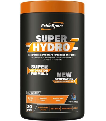 SUPER HYDRO - Descrizione Integratore alimentare idrosalino energetico sviluppato per ottenere una miscela ipotonica, con carboidrati ed elettroliti (sali minerali). La soluzione mantiene prestazioni di resistenza durante l'esercizio fisico prolungato e aumenta l'assorbimento di acqua durante l'att… ...