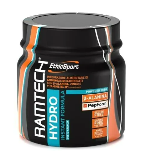 EthicSport Ramtech Hydro è un integratore in polvere con BCAA 2:1:1, beta-alanina, zinco e vitamine B1-B6, ideale per nutrizione muscolare, recupero e performance. Senza glutine, gusto arancia, facile da sciogliere. Formato: polvere da 250 g ...