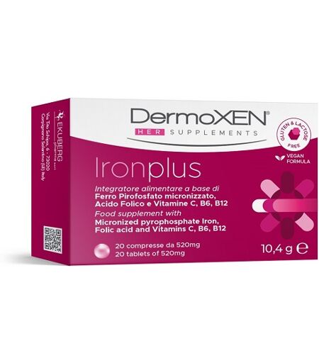 DermoXEN - Ironplus - Descrizione Integratore alimentare a base di ferro pirofosfato micronizzato acido folico e vitamine C B6 e B12 studiato per supportare le carenze nutrizionali o per mantenere un apporto adeguato di questi nutrienti. Inoltre ferro acido folico vitamina C B6 e B12 contrib… ...