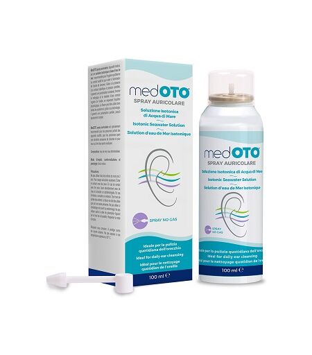 medOTO SPRAY AURICOLARE Soluzione isotonica di Acqua di Mare SPRAY NO GAS Ideale per la pulizia quotidiana dell'orecchio Indicazioni d'uso MedOTO spray auricolare, dispositivo medico, è una soluzione isotonica a base di acqua di mare indicata per facilitare la rimozione degli eccessi di cerume, aiu… ...
