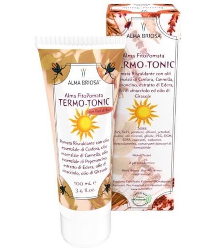 Fitopomata Termo-Tonic Alma Briosa: Fitopomata rubefacente.Stimola il microcircolo, creando un piacevole effetto riscaldante. Per microcircolo.Con oli essenziali di canfora, cannella e peperoncino.Applica un leggero strato e massaggia lentamente. La Fitopomata Termo-Tonic di Alma Briosa è una fitopomata rubefacente ideale per stimolare il microcircolo. A base di oli essenziali di canfora, cannella e peperoncino che riattivano la circolazione e donano un piacevole effetto termico. La miscela floriterapica allevia il disagio legato alle problematiche della pelle. Consigli d'uso:Applica un leggero strato sulla zona da trattare, massaggiando lentamente. INCIAqua**, Vitis Vinifera (Grape) Seed Oil**, Decyl Oleate**, Glycerin**, Cetearyl Alcohol**, Sodium Cetearyl Sulfate, Cinnamomum Camphora (Camphor) Bark Oil**, Helianthus Annuus (Sunflower) Seed Oil**, Capsicum Annuum Extract**, Cinnamomum Zeylanicum Bark Oil**, Clematis Vitalba (Clematis) Flower Extract**, Carpinus Betulus (Hornbeam) Flower Extract**, Larix Decidua (Larch) Flower Extract**, Verbena Officinalis (Vervain) Flower Extract**, Juglans Regia (Walnut) Flower Extract**, Salix Alba (Willow) Flower Extract**, Benzyl Alcohol, Methyl Nicotinate, Potassium Sorbate, Eugenol**, Benzyl Benzoate, Cinnamal**, Linalool**. * ingrediente da agricoltura biologica ** ingrediente di origine vegetale / naturale Controlliamo con cura le descrizioni dei nostri prodotti ma alcuni dati riportati sulla confezione del prodotto (INCI, consigli di utilizzo, certificazioni) possono variare in base agli aggiornamenti dei produttori. Non sempre questi aggiornamenti ci vengono comunicati e può capitare che le informazioni sulla confezione differiscano da quelle riportate qui sul sito. Ti chiediamo perciò di fare sempre riferimento alle informazioni che trovi sul prodotto. Le immagini riportate hanno uno scopo puramente indicativo e possono essere soggette a variazioni da parte dei produttori. ...