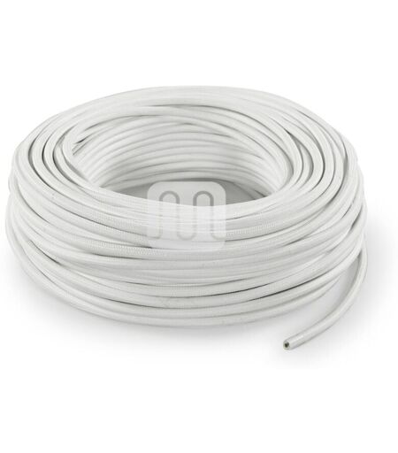 Cavo elettrico flessibile tondo rivestito in tessuto colorato bianco. Cavo tessile per uso interno, per posa mobile all'interno di locali domestici. Per installazioni all'interno di apparecchi di illuminazione e per cablaggio di lampade e dispositivi di illuminazione. Lunghezza cavo: 3 metri. ...