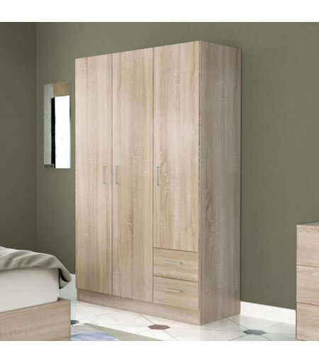 COSMA Armadio guardaroba con 3 ante battenti e 2 cassetti di colore Quercia chiaro mod. Narciso