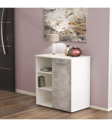 COSMA Mobiletto ingresso moderno con 1 anta battente e 3 mensole a vista di colore Bianco e Cemento chiaro mod. Mark