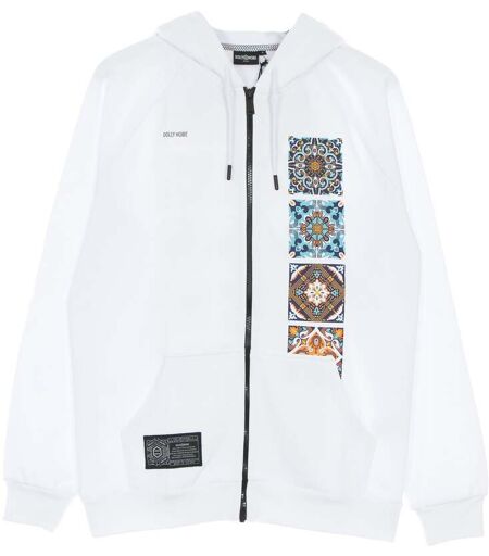 DOLLY NOIRE Felpa Cappuccio Zip Uomo Maioliche a Circuito Stampato Hoodie White