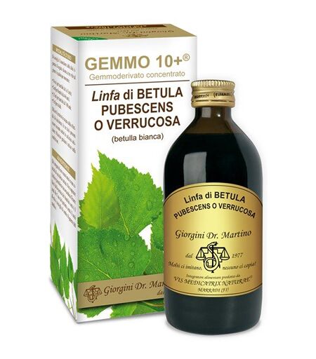GEMMO 10+ Gemmoderivato concentrato - Linfa di BETULA PUBESCENS O VERRUCOSA (betulla bianca) Descrizione Integratore alimentare a base di gemmoderivati concentrati di betulla bianca. I Gemmo 10+, preparati con il metodo inventato dal Dr. Giorgini, offrono al consumatore dei gemmoderivati concentrat… ...