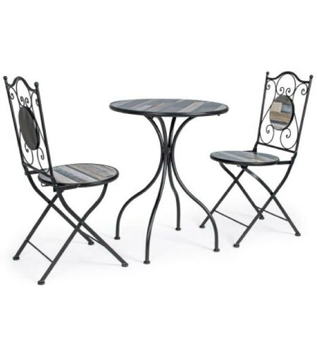 Bizzotto Huston Set Tavolo Con 2 Sedie Pieghevoli è il set bistrot dal design classico, che aggiungerà praticità, colore e stile alla zona outdoor, grazie agli elementi dettagliati e eleganti che lo compongono. Composto da un tavolo rotondo e due sedie pieghevoli, tutti gli elementi che lo compongono sono realizzati in acciaio verniciato mentre piano, seduta e decori sono in ceramica. Un set pratico e funzionale dalla struttura elegante e raffinata. La scelta ideale per arredare la zona outdoor con colore, stile e versatilità! CARATTERISTICHE Struttura in acciaio trattato per esterno (e-coating) e verniciato a polvere epossidica Piano, seduta e decori in ceramica Sedie pieghevoli Gambe del tavolo da assemblare Dimensioni del set: _ Sedie: Larghezza: 38 cm - Profondità: 38 cm - Altezza: 92 cm - Altezza seduta: 46 cm. _ Tavolo: Diametro: 60 cm - Altezza: 75 cm. ...