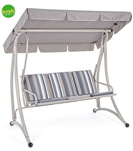 Il dondolo Grely a tre posti di colore avorio presenta una struttura in acciaio verniciato a polvere, che ne garantirà la massima protezione dagli agenti atmosferici. La struttura è composta da pali con un diametro di 50-28-30 millimetri. Il dondolo presenta un tettuccio in poliestere e una seduta in textilene 2x1, con imbottitura in filo di poliestere. È un dondolo posizionabile sia in giardino ma anche su un balcone per rilassarti nelmigliore dei modi in ambienti esterni. È da assemblare. ...