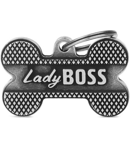 MyFamily Medaglietta per Cani Personalizzabile Osso Bronx Lady Boss Argento Antico L