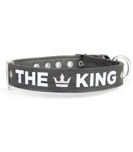 MyFamily Collare per Cani Royal Ricamo The King in Similpelle Grigio e Nero ML (37-45cm)