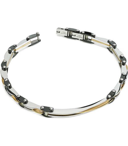 Bracciale Da Uomo Di Boccadamo Della Collezione Man. Bracciale In Acciaio 316l Anallergico Con Maglie Nere E Fasce Interne Placcate In Oro Giallo. Misure: Lunghezza Regolabile Fino A Cm 20. Chiusura: A Scatto. La Referenza È Abr735a, Chiusura: Ad Amo, A ...