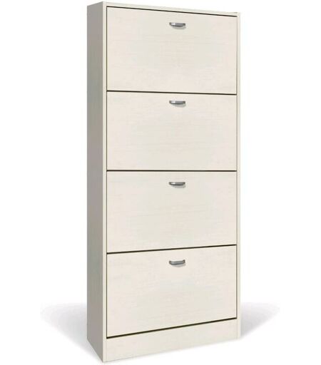EACOMMERCE Scarpiera in Legno 4 Ante colore Bianco Nordico Mobiletto 24 Paia 63x24x150H cm (CD102-BN) 4 Ante - 63x24x150H cm Bianco Nordico