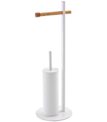 EACOMMERCE Piantana Porta scopino + Porta Rotolo da Bagno Acciaio Colore Bianco Opaco Bambu'