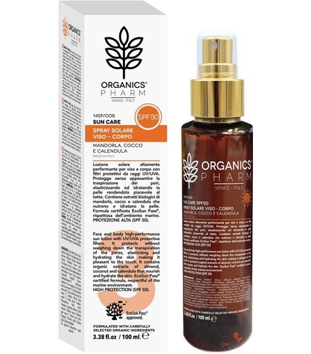ORGANICS PHARM - SUN CARE SPF50 - Descrizione Lozione solare altamente performante per viso e corpo con filtri protettivi da raggi UV/UVA. Protegge senza appesantire la traspirazione dei pori, elasticizzando ed idratando la pelle rendendola piacevole al tatto. Contiene estratti biologici di mandorl… ...