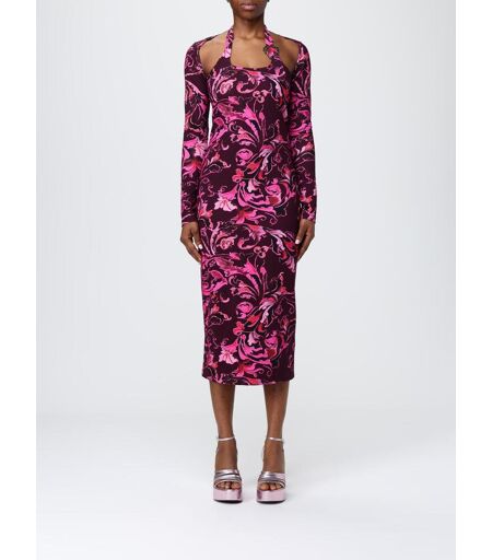 Versace Jeans Couture Abito in cotone stretch con stampa Versace Baroque Viola Taglia 46