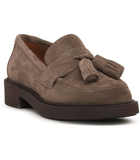 mocassino frau in pelle scamosciata con maxi-nappine scarpe che rinnovano un grande classico: colorblock suola bold e colori di stagione una combo vincente. tomaia e fodera in pelle sottopiede in cuoio e suola in gomma. made in italy. colore: grig ...