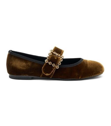 Frau ballerina marrone in velluto con fibbia 69g2