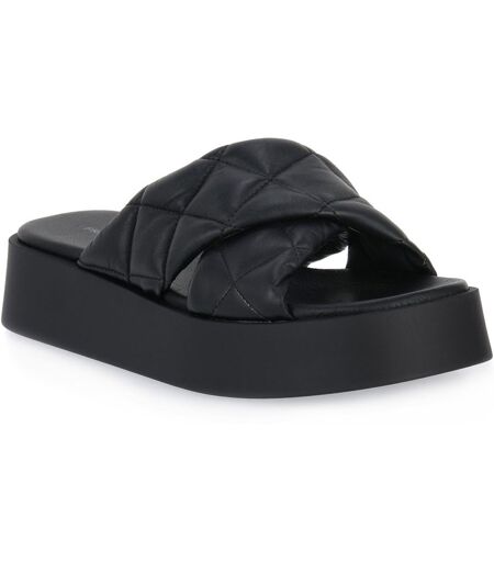 ciabatta a incrocio in ecopelle con la suola platform e tomaia matelasse. extra comfort e look total black rendono questo modello alleato di stile per tutta l'estate dalla mattina alla sera. sottopiede imbottito rivestito in pelle e suola platform ...