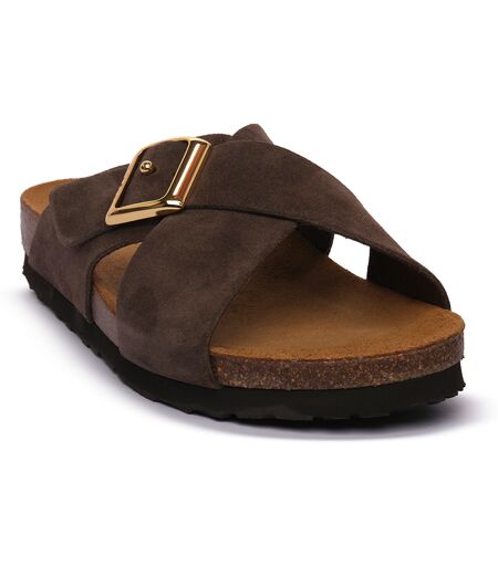 ciabatta da donna in pelle scamosciata con fasce intrecciate perfetta per accompagnarti durante le tue giornate estive in casa e fuori. tomaia in morbida pelle scamosciata con fibbia per regolare la calzata. plantare anatomico leggermente imbottito ...